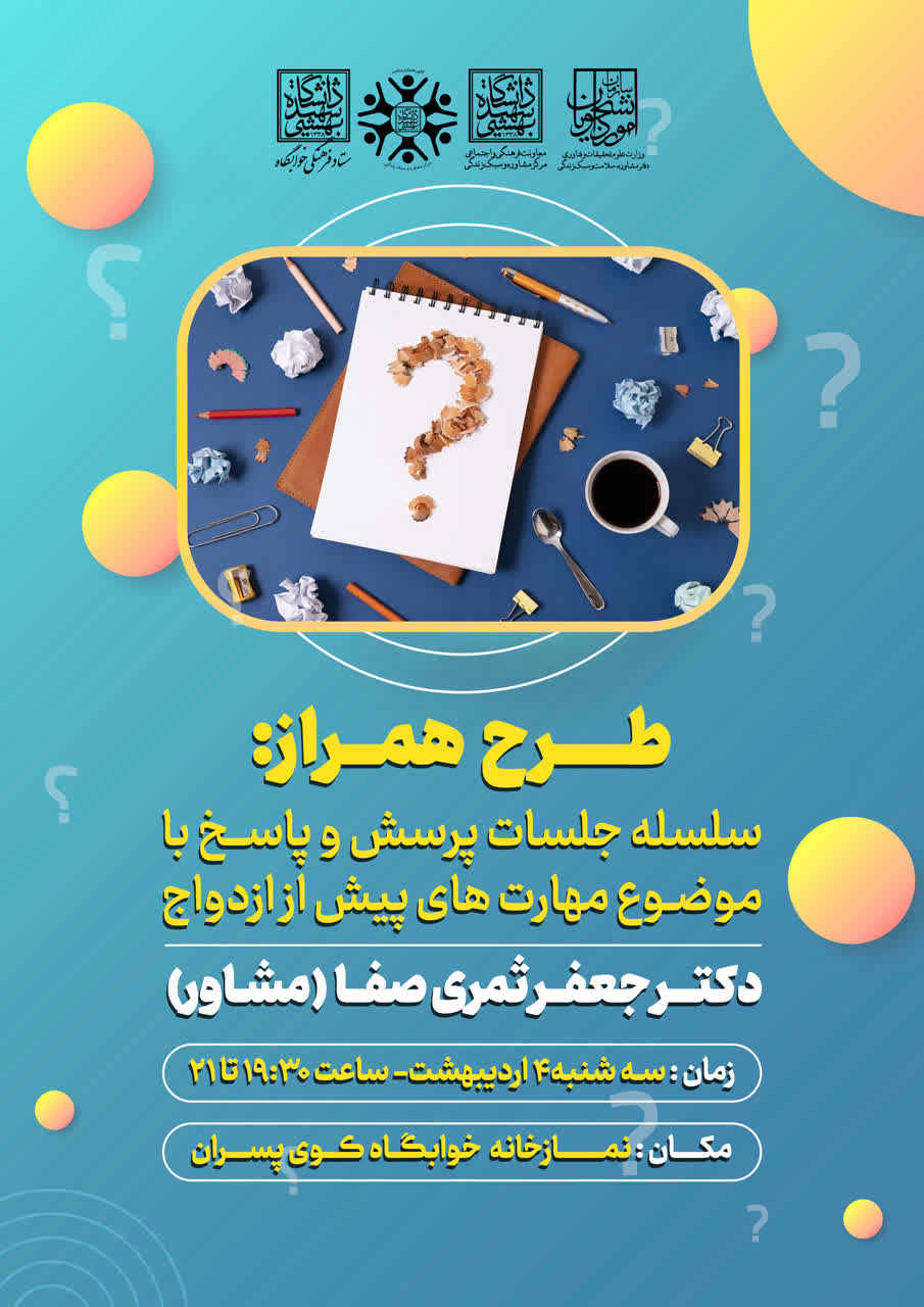 سه شنبه های خوابگاهی: سلسله جلسات پرسش و پاسخ با موضوع مهارت های پیش از ازدواج ویژه دانشجویان خوابگاهی سه شنبه هر هفته برگزار می گردد.