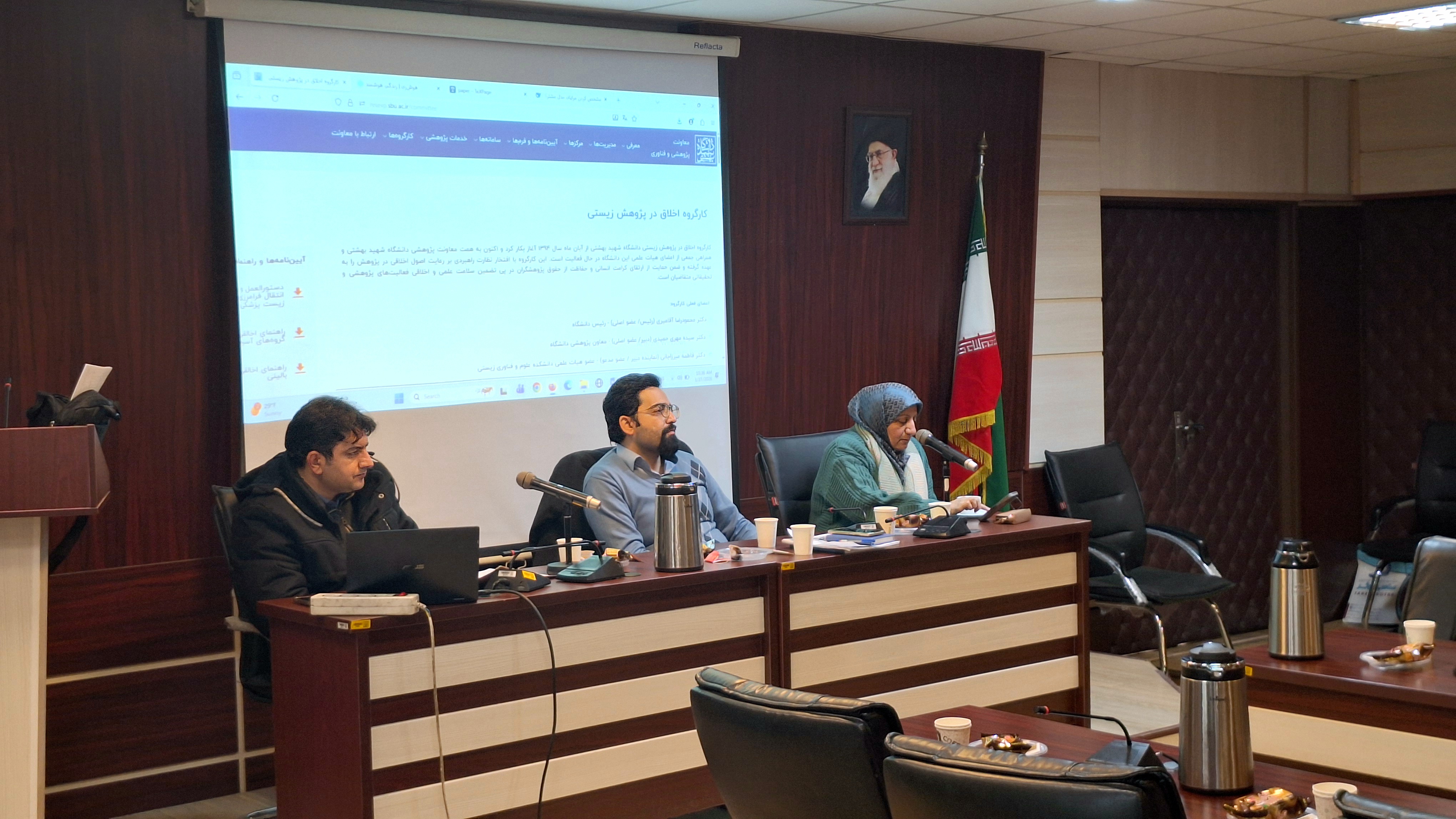 در ادامه، قوانین و مقررات کمیته اخلاق زیستی با حضور سرکار خانم دکتر میرزاجانی و جناب آقای دکتر عباسی، رئیس مرکز تحقیقات اخلاق و حقوق پزشکی دانشگاه علوم پزشکی شهید بهشتی و نماینده حقوقی و فقهی وزارت بهداشت در کمیته اخلاق زیستی، بررسی شد. در این بخش، گزارشی از تعداد پروژه‌های بررسی‌شده و در حال بررسی، همراه با برخی موارد خاص ارائه شد و اهمیت و جایگاه اخلاق در پژوهش، پیشینه آن و چالش‌های موجود مطرح گردید. در پایان، اعضای شورا به پرسش‌های خود پاسخ دریافت کردند.